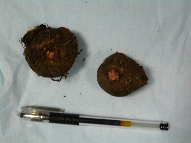 栽培農家の方も「これは何?」と首を傾げる、コンニャクの種も見せて頂きました。