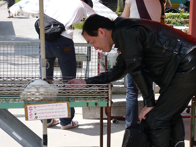 動物好きさんは、うさぎさんと遊んでます。この嬉しそうな顔!