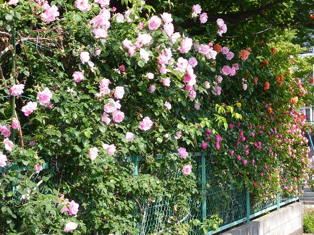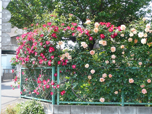 学校の帰り、裏道を通ったら、あちらこちらで薔薇がきれいに咲いているので、
